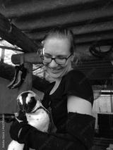 happy volunteer holding penguin