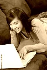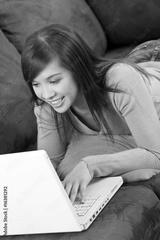 Happy Young Asian Chinese Woman Using Laptop Computer