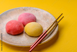 Japanese mochi, ice cream or Asian sweets with fruit filling. Mochi of different colors