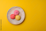Japanese mochi, ice cream or Asian sweets with fruit filling. Mochi of different colors