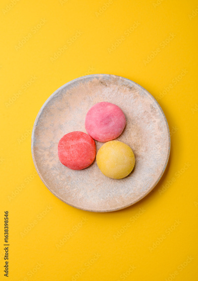 Japanese mochi, ice cream or Asian sweets with fruit filling. Mochi of different colors