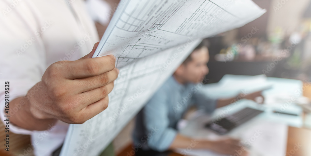 Architect engineer office concept. Architecture engineering plan. Construction plans.