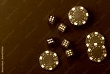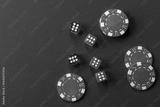 Dice poker game with chips, bets and risk in casino. Dice poker