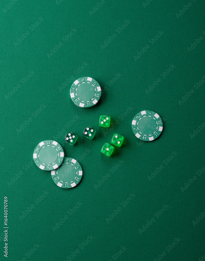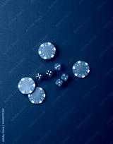 Dice poker game with chips, bets and risk in casino. Dice poker