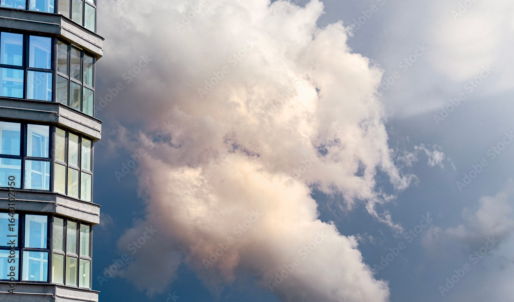 Modern high rise building in urban metropolis. Multi story condominium with windows and contemporary