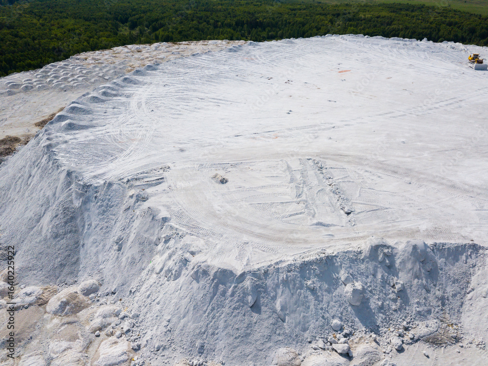 Aerial view of White Mountain near Russian town of Voskresensk - slagheap entirely composed of phosphogypsum mining wastes
