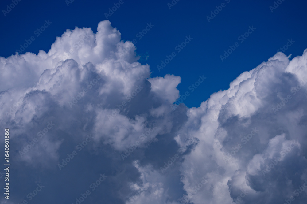 Cloudy skies. Cumulus clouds in sky. Cloud wallpaper. Sky background. Cloudy sky with sunlight. White clouds wallpaper. Blue sky and white clouds background. Idyllic fluffy clouds. Calm nature.