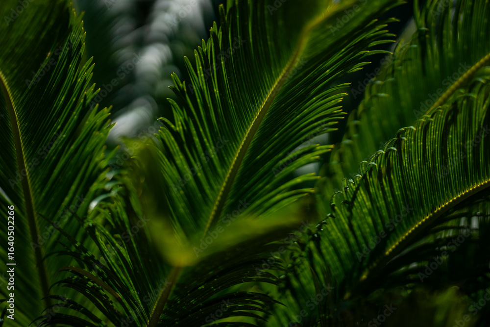 Palm leaves background. Green leaves wallpaper. Exotic jungle foliage. Green leaves tropical greenery. Palm leaf closeup shot. Green pattern. Palm leaves backdrop. Green palm background.