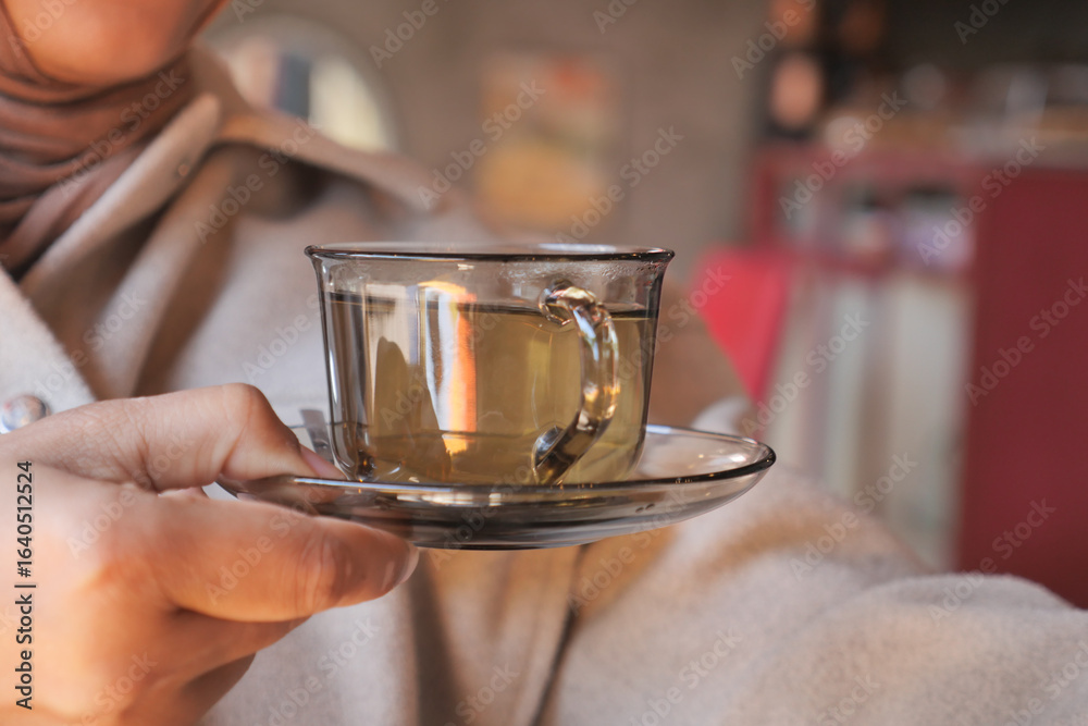 Enjoying a warm cup of herbal tea in a cozy cafe