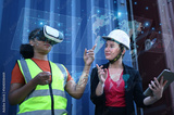 Woman worker using AI technology for logistic management to forecast demand, prevent stockouts, and accelerate last-mile delivery performance