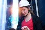 Businesswoman using AI technology for logistic management to predict delivery delays, optimize routes, and enhance real-time shipment monitoring