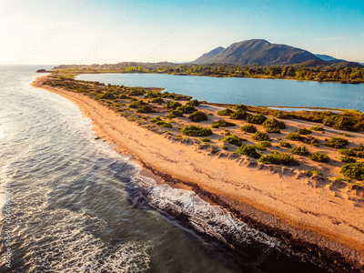 Ionian Islands Corfu in Greece. View of the breathtaking Halikounas Beach and Lake Korission.