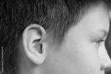 Macro shot child’s ear close-up, boy listening, human facial detail, Hearing Test, Cochlear implant, Assistive listening device, ringing or buzzing sensation, Auditory impairment, Medical condition