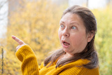 open-mouthed middle-aged woman in shock, capturing raw emotion surprise and disbelief unexpected news, Mature woman Emotional portrait