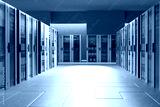 Modern data center with rows of server racks, network equipment, and cable management, used for cloud computing, IT infrastructure, technology services. 3d image.