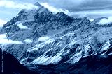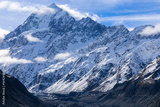 Close-Up of Mount Cook’s Snow-Covered Slopes Under Blue Sky