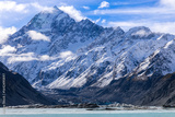 Mount Cook Rising Above Hooker Lake with Glacial Ice