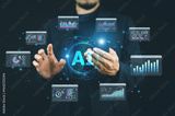 Businessman leverages AI to analyze economic data for smarter investment decisions and market predictions.