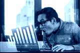 Businessman relies on AI-powered economic analysis to drive innovation and competitive advantage.