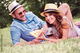 Couple enjoying picnic together. Love and tenderness, dating, romance, lifestyle concept