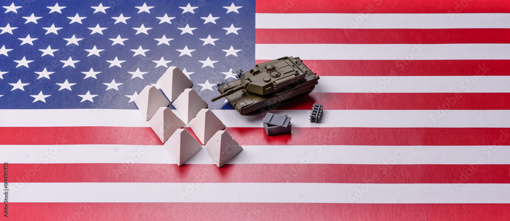 Anti-tank barrier or dragon's teeth made of concrete and iron as a fortification. Dragon's teeth