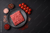 Raw minced beef or pork, ground meat for burgers. Raw minced meat