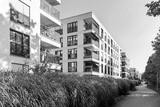 Cityscape of a residential area with modern apartment buildings, new green urban landscape in the city