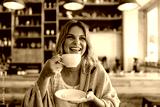 Smiling young woman having coffee