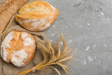 Homemade natural breads. Different kinds of fresh bread as background, top view with copy space