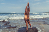 Arms lifted, woman reclaims space and energy, stretching toward sky as act of releasing digital tension, celebrating body autonomy and online boundaries.