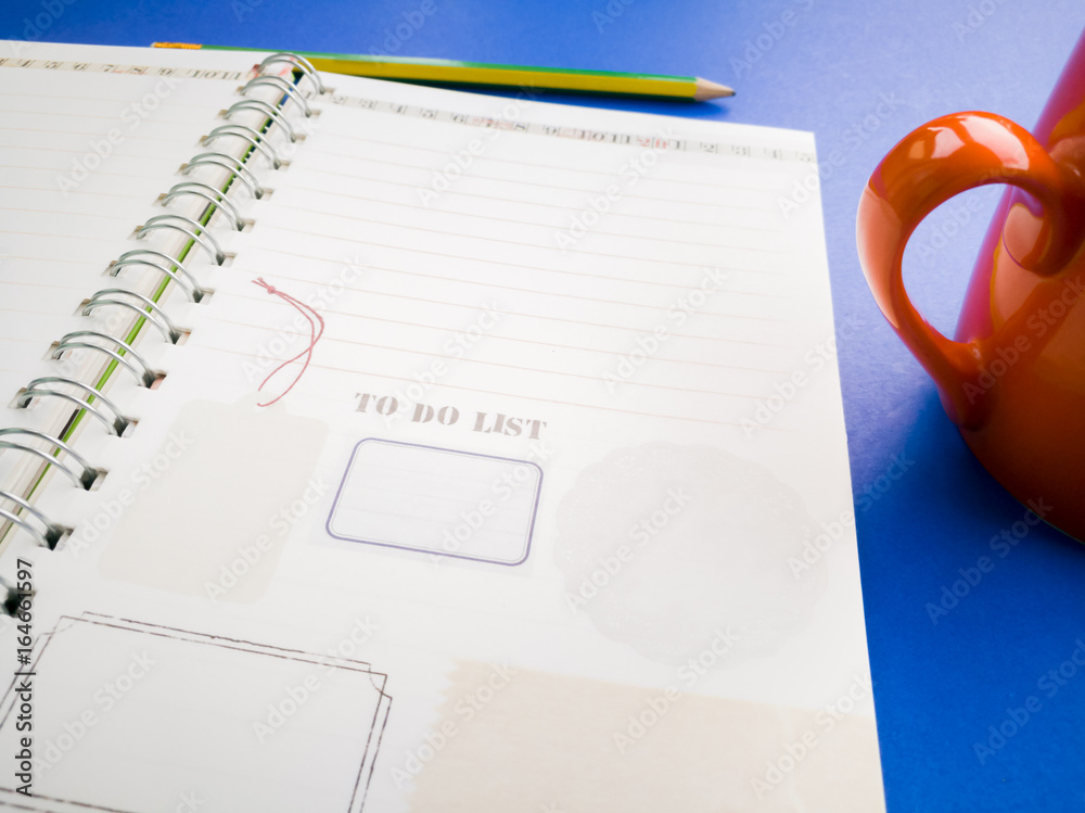 open diary book and pencil on the blue background