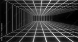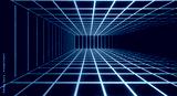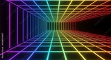 Neon rainbow grid on a retro style black backgroun