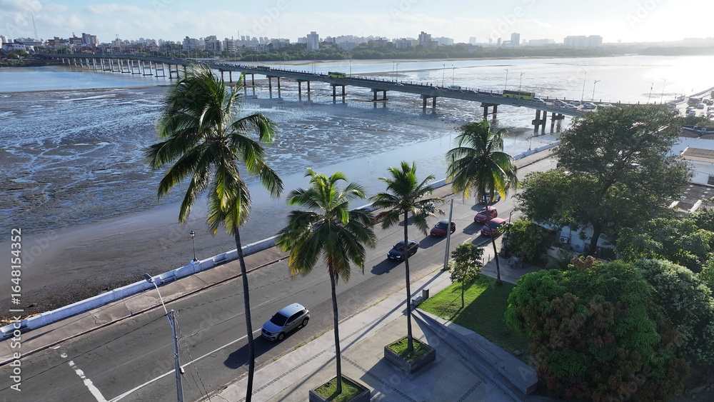 Sunset In Jose Sarney Bridge At Sao Luis In Maranhao Brazil. Anil River Scene. Jose Sarney Bridge. Jose Sarney Bridge At Sao Luis In Maranhao Brazil. Scenic Sunset. Tourism Travel. Brazil Northeastern