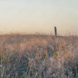 Campo de Hierba Seca y Escarchada con un Poste Solitario al Amanecer o Atardecer