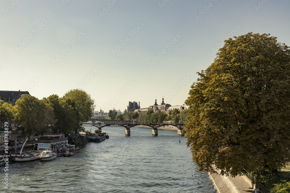 Arts bridge (Pont des Arts) and Louvre Museum. Paris, France
