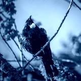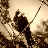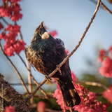 Tui bird perched on Cherry Blossom tree. Auckland. New Zealand.