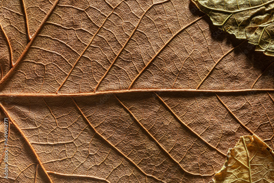 Autumn dry leaf close-up with natural brown texture and veins