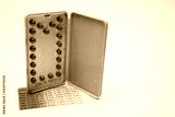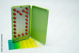 Contraceptive pills with modern package on white background
