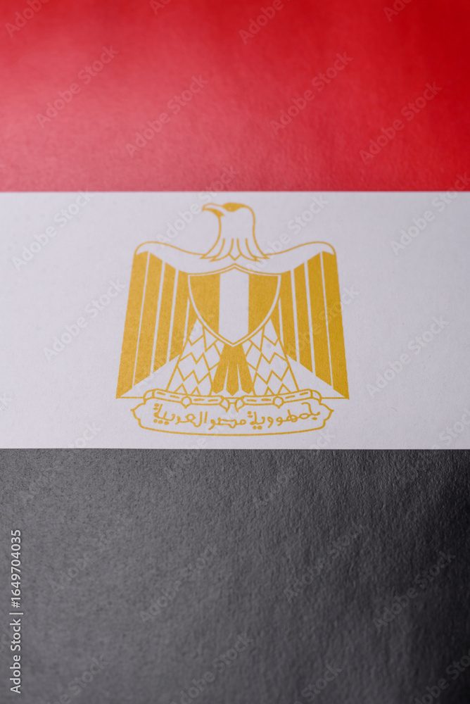 Egyptian flag in red, white and black colors as a symbol of independence. Flag of Egypt