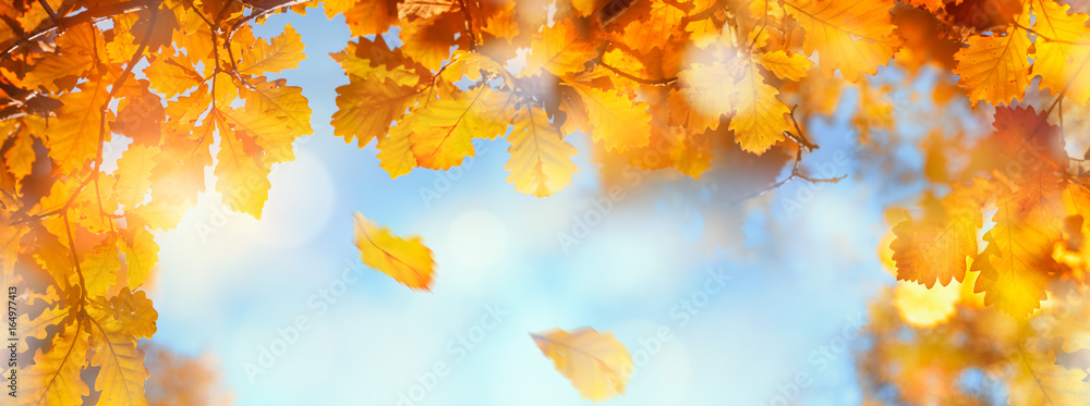 Autumn leaves sky background