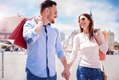 Shopping time. Young couple in shopping. Consumerism, love, dating, lifestyle concept