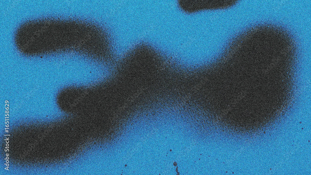 Black spray paint line on blue background. Noises and grain texture illustration.