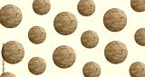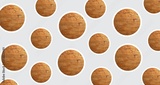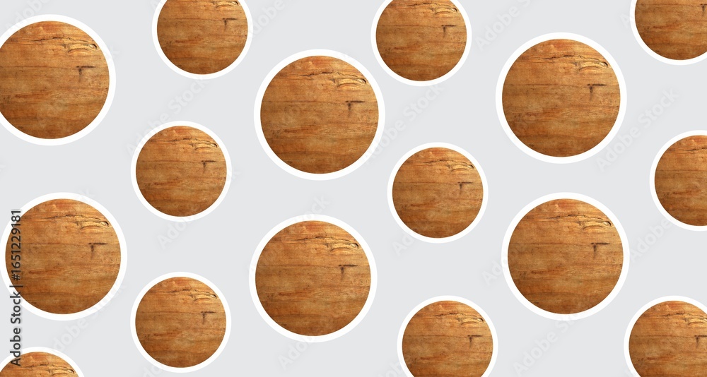 Circular patterns, modern art mixed with antiquity. Wood floor element, repetitions. Sustainability, minimalism, futurism. Image manipulation