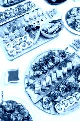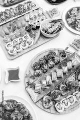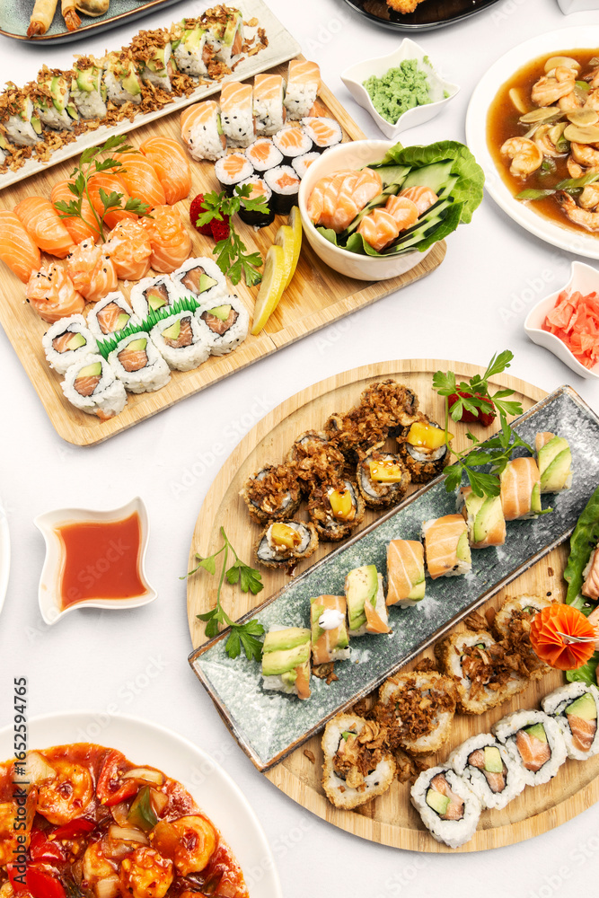 sushi mixed plate moriawase meal on plate in japanese restaurant