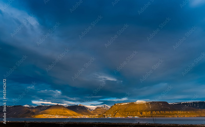 Wallpaper norway landscape nature of the mountains of Spitsbergen Longyearbyen Svalbard building city on a polar day with arctic summer in the sunset and blue sky with clouds