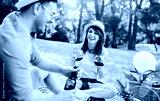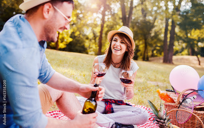 Couple enjoying picnic together. Love and tenderness, dating, romance, lifestyle concept