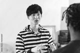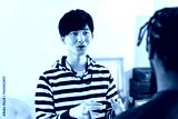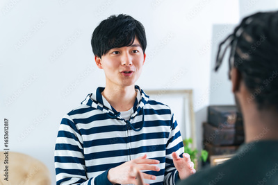 外国人男性と会話する日本人男性