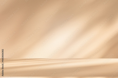 Wall interior background, studio and backdrops show products. with leaf shadow from window color beige and white. background for text insertion and presentation of product
