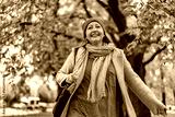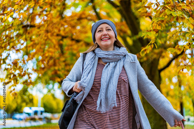 Portrait of beautiful mature woman in autumn scenery