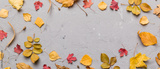 Autumn composition made of dried leaves, cones and acorns on table. Flat lay, top view